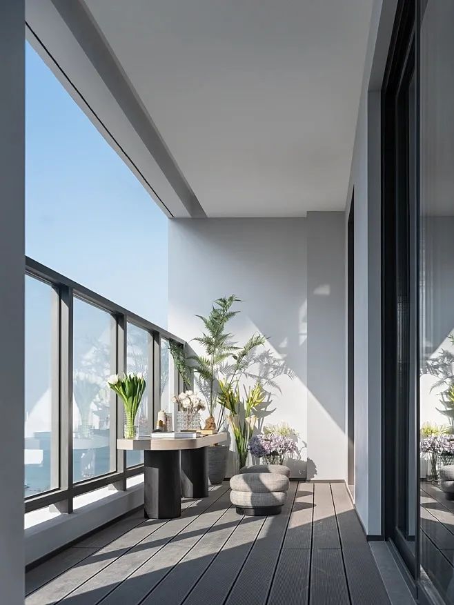 近年来,走高冷范的“禁欲系”装修风格更受到年轻人的喜爱。看起来冷清的家居环境没有什么烟火气,却与窗外繁华而热闹的城市形成了鲜明的对比,此时,室内的简约和安静是放松心情的好环境。简约而不失精致,大块的几何形设计,颇有“闹市中的禅境”生活的意味。低饱和度奶油色系墙的自然质感,铺满了整个客厅和浴室,温柔的气息荡漾而来。没有华丽的吊灯,取而代之的是柔和舒适的点光源,卸下了疲惫,身心轻松,这里是一切温柔的开始。以简约为前提,以居住者内心喜好和需求为核心的纯粹式家装风。毕竟, 每个人的家都有独特的气场,都是生活层次与个性品味的折射。在简约的空间中,可以选择百搭中性色或低饱和度的色调,搭配干净利落的线条进行修饰,使家居环境偏向于随性,整体色调往往多由经典的黑白灰及原木色组成。客厅里所有元素保持非常素雅整洁状态,而细节则会随着时间凸显。整个空间用奶茶色墙布搭配暖色调的原木房门和饰面,素雅、朴实、低调的视觉感,让人不禁放慢脚步,躺在沙发上享受生活的慢节奏。客厅外布置的景观阳台,让居住者可以尽情享受户外的美好风景。阳台设计充分利用了空间与视野,白天可以沐浴阳光,感受自然,晚上则可以欣赏城市夜景,让家庭生活更富有情趣。生活阳台的设计也很人性化,可用于晾晒衣物和储物,非常实用。此外,它集成了一些自然元素,例如花草绿植等,让人们与自然互动,更加健康和舒适。房子和家之间的差距,只隔了一个“你”,