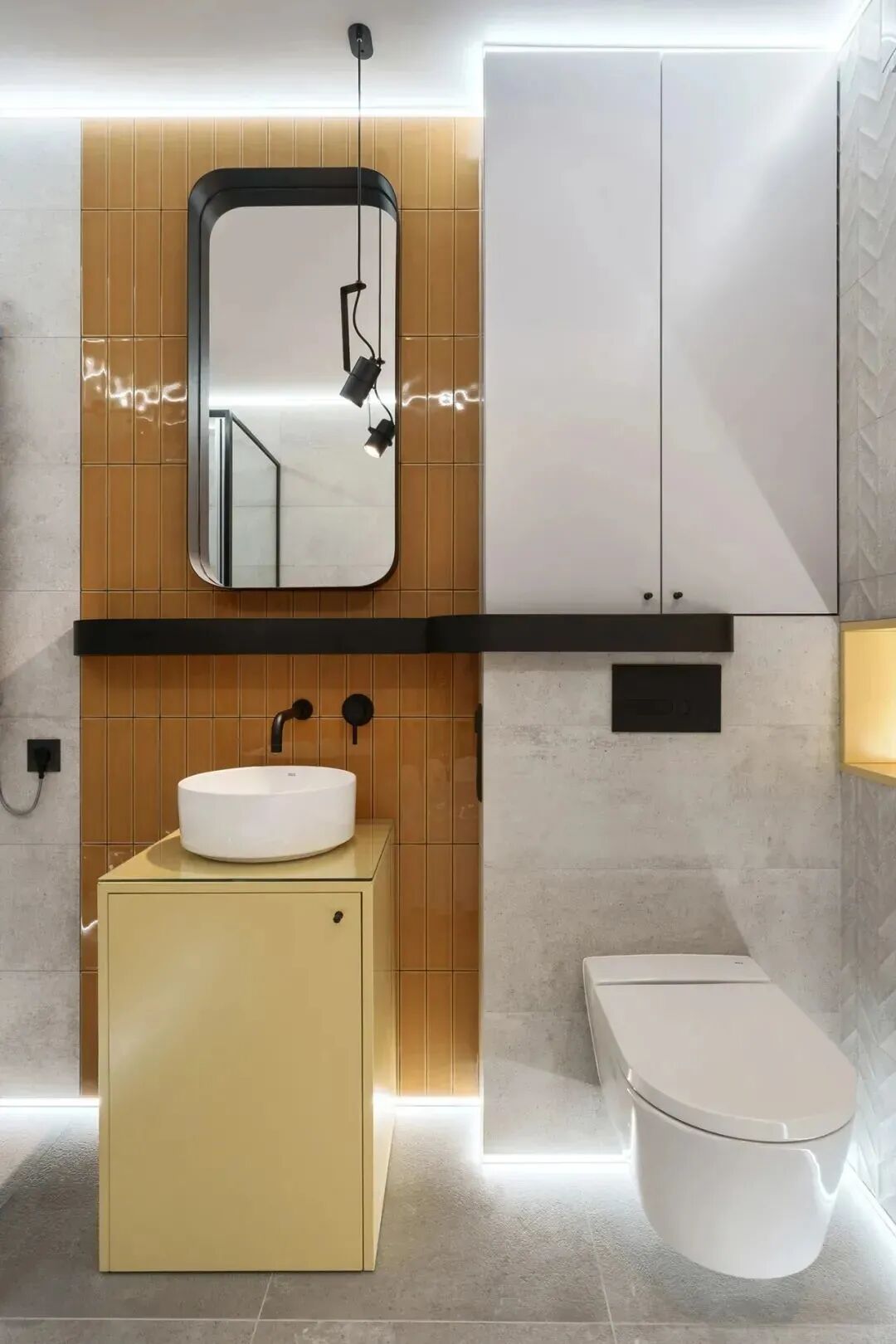 浴室柜一定要选大号的,高度最好在20cm以上,这样脸盆放柜体里,全部藏起来,眼不见为净。