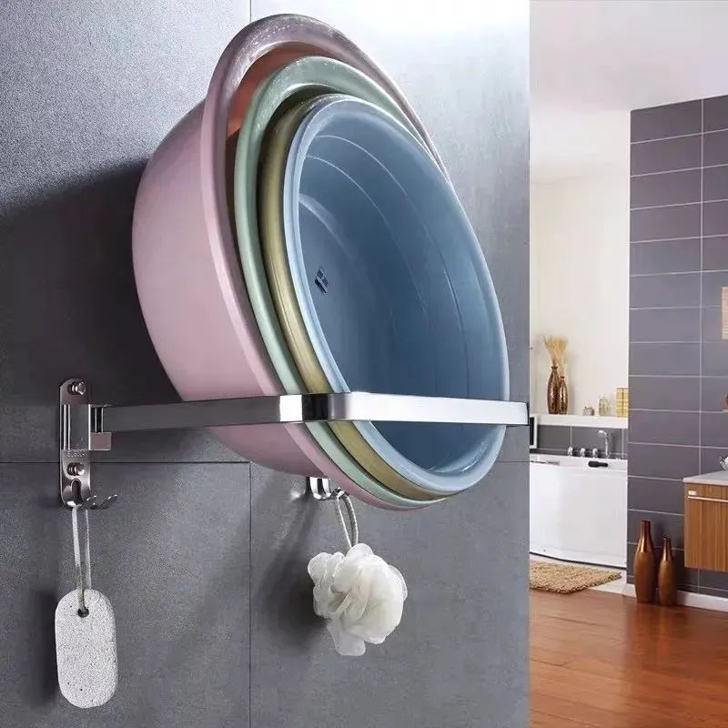 如果卫生间已经装修好,实在没有柜体隐藏收纳脸盆,那么不妨试试其他脸盆收纳工具。